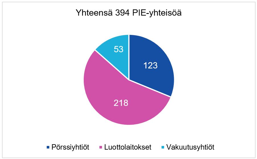Tilintarkastusten kohteena olevat PIE-yhteisöt jakautuvat tilintarkastusyhteisöjen ilmoittamien tietojen perusteella Suomessa seuraavasti:
