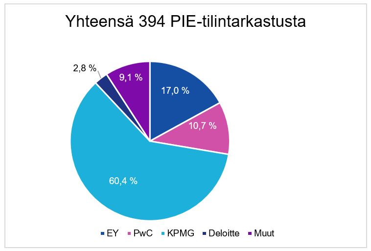 Myös Suomessa PIE-tilintarkastukset ovat keskittyneet suurimmille tilintarkastusyhteisöille. PIE-asiakkaiden lukumäärän mukaan laskettuna neljällä suurimmalla (Big Four) tilintarkastusyhteisöllä on 91 % PIE-tilintarkastustoimeksiannoista.