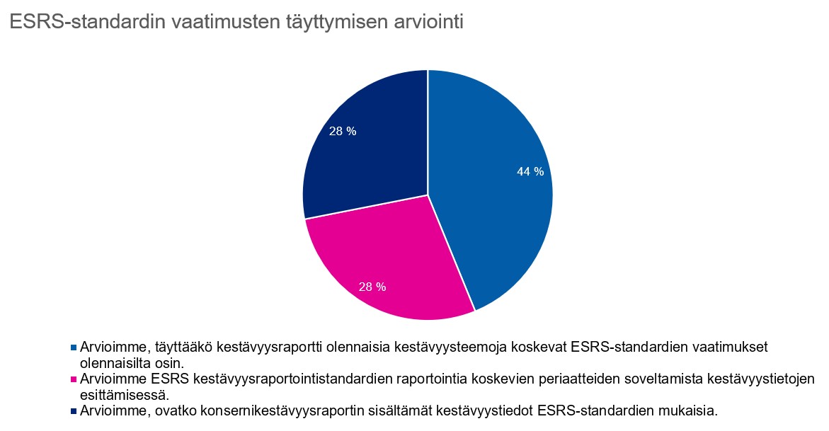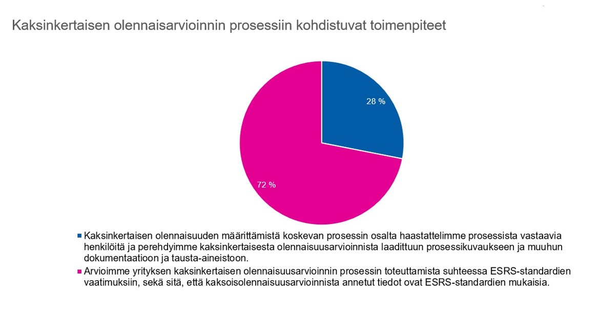ESRS-standardin vaatimusten täyttymisen arviointiin liittyviä toimenpiteitä on läpikäydyissä varmennusraporteissa esitetty seuraavasti: