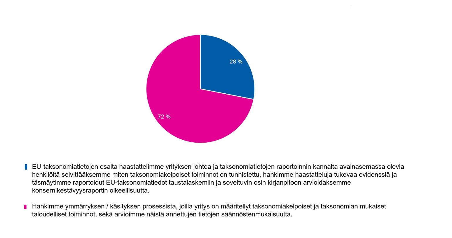 EU-taksonomiaan kohdistuvia toimenpiteitä varmennuskertomuksissa on esitetty seuraavasti: