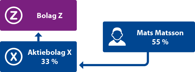 Mats Matsson är majoritetsaktieägare med 55 procent av aktierna i aktiebolaget X som äger 33 procent av aktierna i bolaget Z.