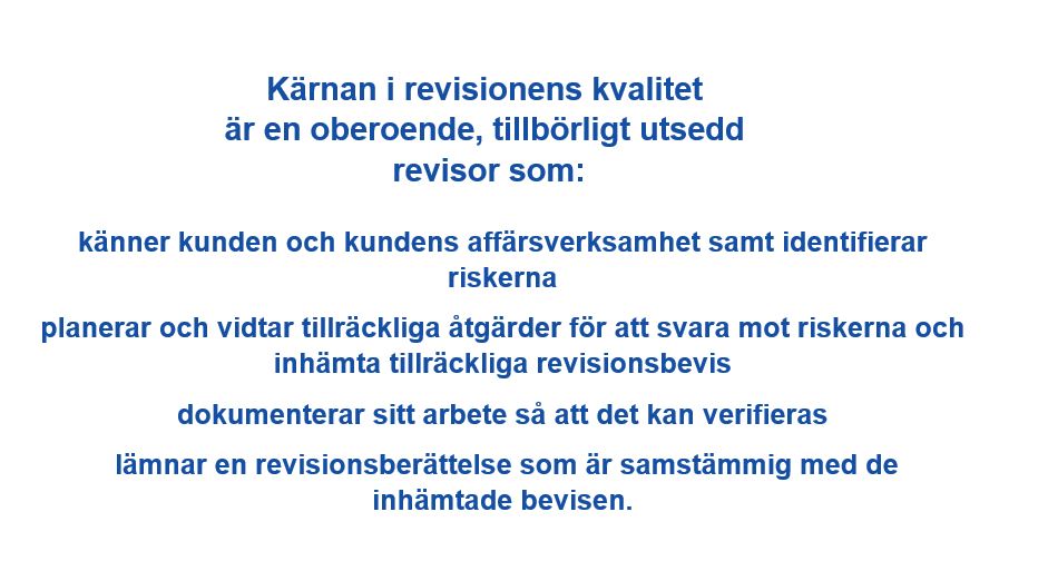 De kvalitetsgranskningar som gjorts i år visar på stora variationer i revisionens kvalitet. Bland kvalitetsgranskningarna fanns emellertid många fall som uppfyllde kvalitetskraven.