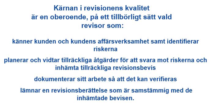 Revisorerna har en viktig roll när det gäller att säkerställa att bokslutsinformationen i Finland är riktig och tillräcklig. Revision av hög kvalitet utgör grunden för att lämna en revisionsberättelse som med hänsyn till omständigheterna är korrekt.