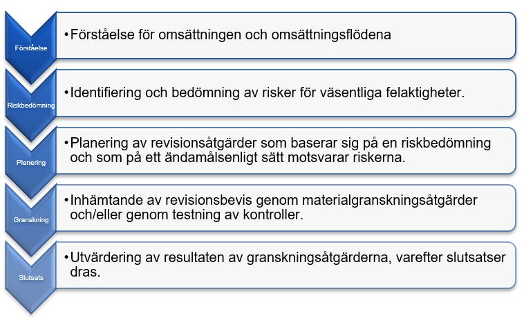 - Slutsats - Utvärdering av resultaten av granskningsåtgärderna, varefter slutsatser dras.