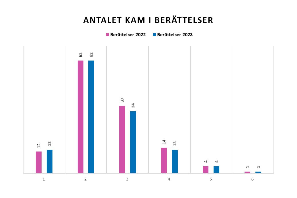 År 2023 rapporterades sammanlagt 317 KAM-områden (329 år 2022). 59,1 % av berättelserna för år 2023 (56,9 % för år 2022) innefattade högst två för revisionen särskilt betydelsefulla områden.