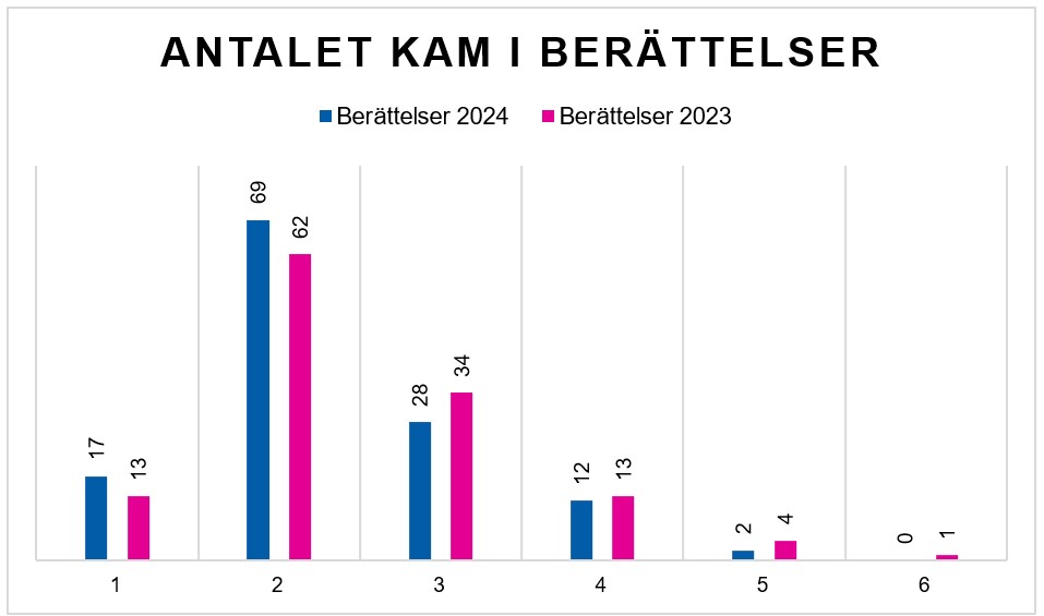 År 2024 rapporterades sammanlagt 297 KAM-områden (317 år 2023). 67,2 % av berättelserna för år 2024 (59,1 % för år 2023) innefattade högst två för revisionen särskilt betydelsefulla områden.