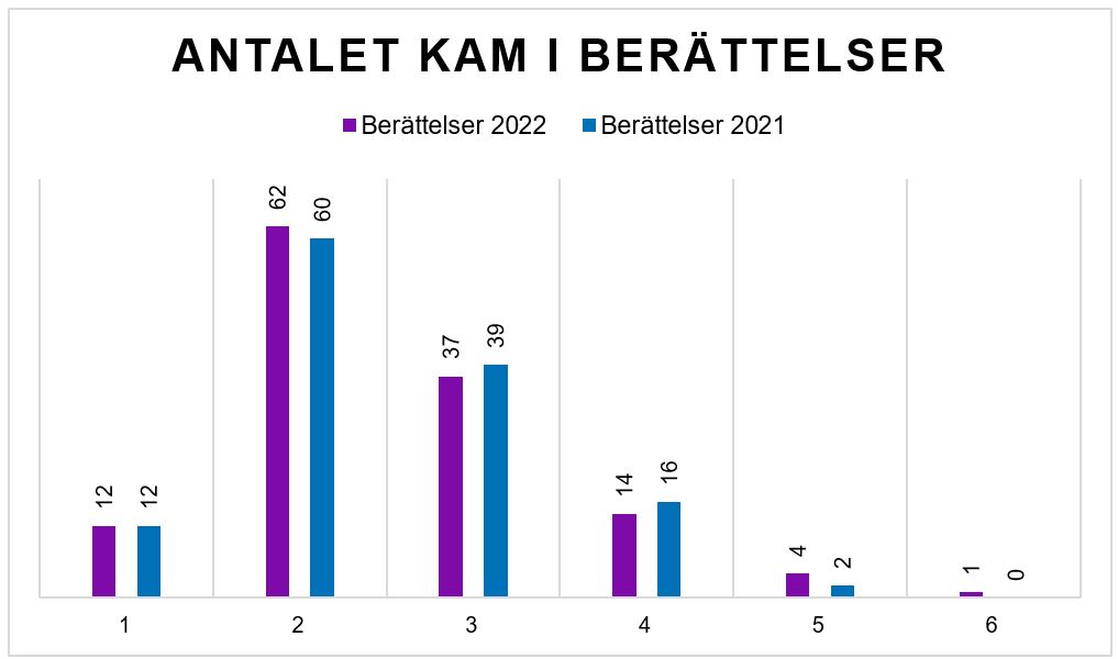 År 2022 rapporterades sammanlagt 329 KAM-områden (323 år 2021). 56,9 % av berättelserna för år 2022 (55,8 % för år 2021) innefattade högst två för revisionen särskilt betydelsefulla områden.